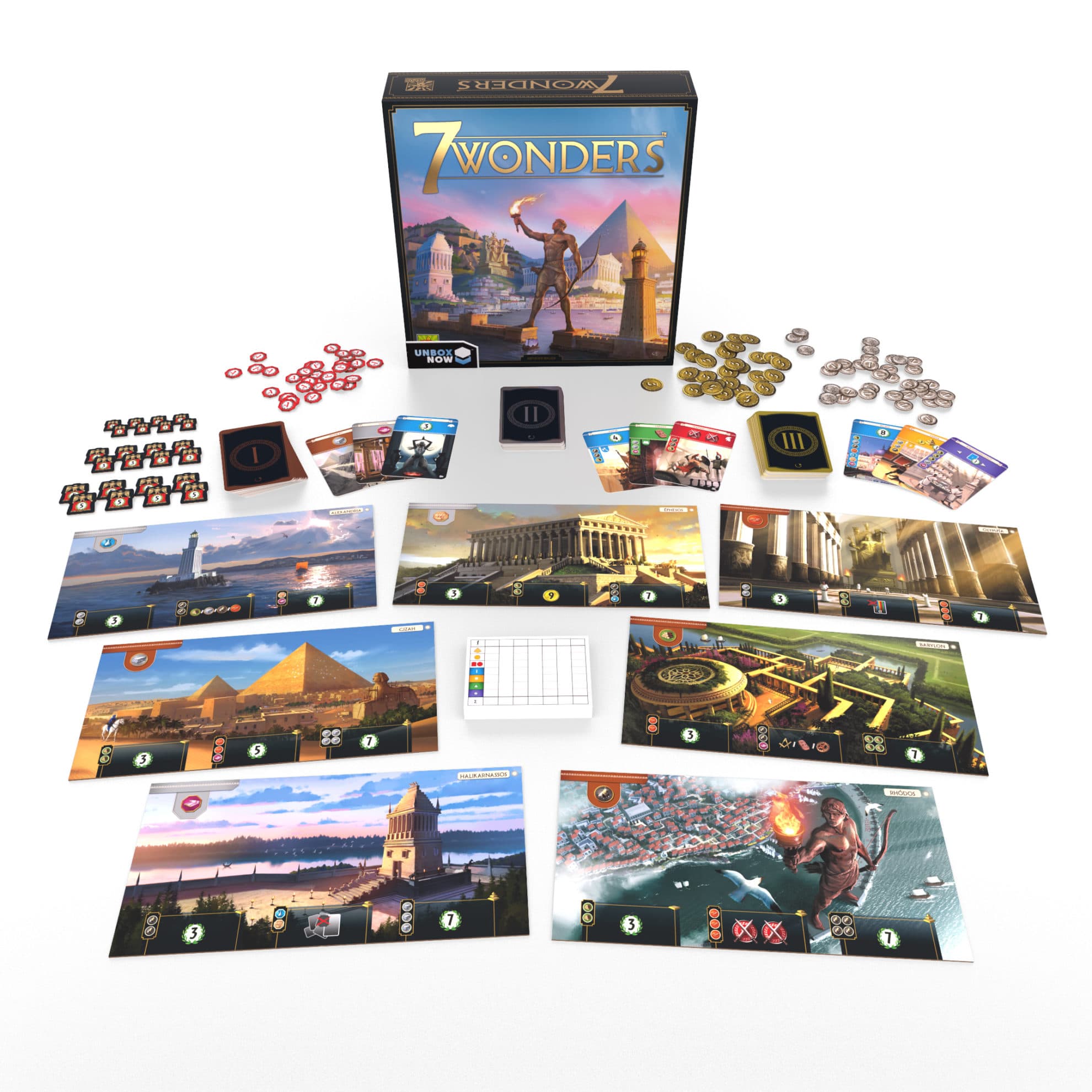 Poursuivez votre exploration de l’univers de 7 Wonders et plongez-y grâce à ses nombreuses extensions !